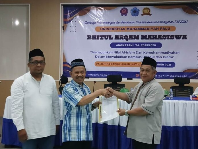 AKTIVI.ID– Universitas Muhammadiyah (Unismuh) Palu melalui Lembaga Pengembangan dan Pembinaan Al Islam Kemuhammadiyahan (LP2AIK) telah melaksanakan Baitul Arqam Mahasiswa Angkatan 1 Tahun Akademik 2025/2026, diikuti 76 Peserta dengan rincian, 24 laki-laki dan 52 perempuan. 74 beragama Islam, 1 Kristen dan 1 Hindu.
