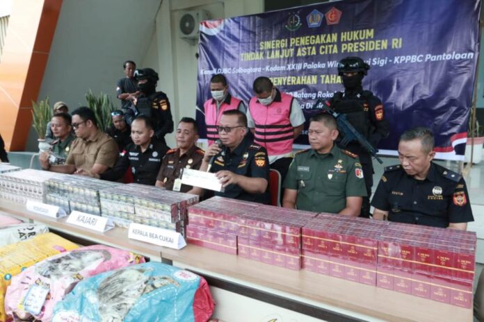 melakukan penindakan terhadap rokok ilegal yang tidak dilekati pita cukai sebanyak 3.224.000 batang rokok ilegal, di BTN Baliase, Kecamatan Marawola, Kabupaten Sigi.