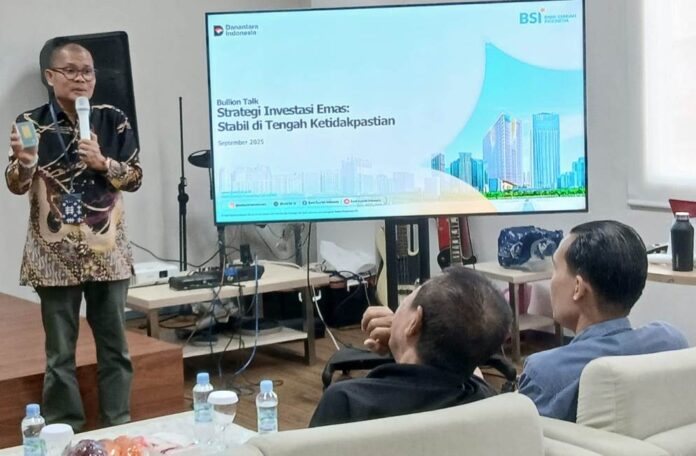 AKTIVI.ID– Harga emas makin hari makin meroket. Hal itu mendorong PT Bank Syariah Indonesia (BSI) Area Palu bekerja sama dengan Tri Media Group untuk menggelar workshop –mengenalkan konsep Bullion Bank kepada para jurnalis ekonomi di Kota Palu.
