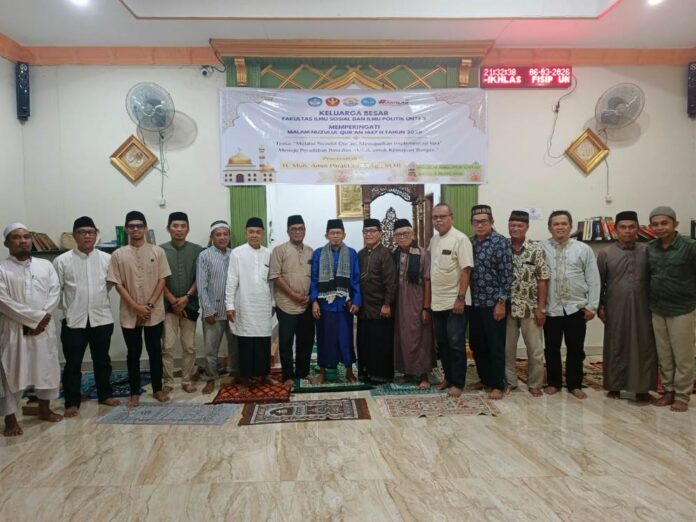 AKTIVI.ID-Fakultas Ilmu Sosial dan Ilmu Politik (FISIP) Untad menggelar peringatan malam Nuzulul Qur’an bertemakan “Melalui Nuzulul Quran Mewujudkan Implementasi Iqra Menuju Peradaban Ilmu dan Akhlak Untuk Kemajuan Bangsa” yang berlangsung di Masjid Al Ikhlas Fisip Untad Pada Jumat (6/3/2026)