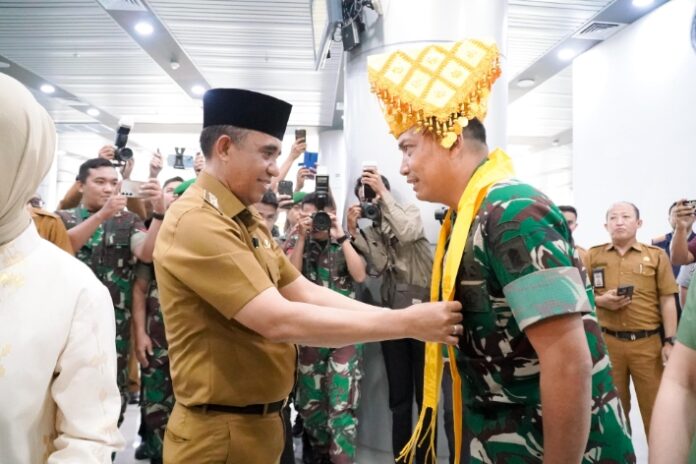 AKTIVI.ID- Gubernur Sulawesi Tengah, Anwar Hafid, bersama Ketua TP-PKK Sulteng, Sry Nirwanti Bahasoan, menyambut kedatangan Panglima Kodam XXII/Palaka Wira, Mayjen TNI Jonathan Binsar Parluhutan Sianipar, di Bandara Mutiara SIS Al-Jufri Palu, Selasa (1/9/2025).