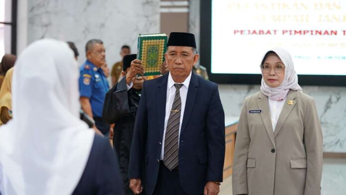 AKTIVI.ID– Wakil Wali Kota Palu, Imelda Liliana Muhidin, memimpin prosesi pelantikan dan pengambilan sumpah/janji jabatan pejabat pimpinan tinggi pratama di ruang rapat Bantaya, Kantor Wali Kota Palu, pada Senin (06/10/2025).