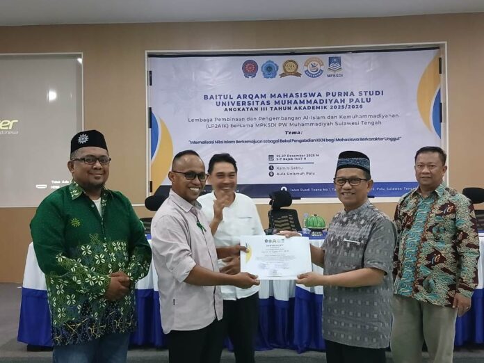AKTIVI.ID-Lembaga Pembinaan Pengembangan Al-Islam Kemuhammadiyaan (LP2AIK) Universitas Muhammadiyah (Unismuh) Palu kembali melakukan Baitul Arqam (BA), kali ini adalah BA angkatan ke III Tahun akademik 2025/2026 diperuntukan bagi mahasiswa studi akhir yang akan mengikuti Program Kuliah Kerja Nyata (KKN) di Masyarakat.