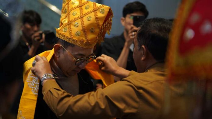 Penyambutan diawali dengan prosesi adat berupa pemasangan Siga, penutup kepala tradisional khas Sulawesi Tengah, kepada Menteri Kebudayaan RI sebagai simbol penghormatan dan penerimaan tamu kehormatan.