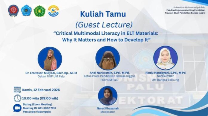AKTIVI.ID-Fakultas Keguruan Ilmu Pendidikan (FKIP) Universitas Muhammadiyah (Unismuh) Palu, melalui Program Studi (Prodi) Pendidikan Bahasa Inggris terus melakukan upaya memperkaya pengetahuan mahasiswa melalui program luar kelas, salah satunya berupa Kuliah Tamu.