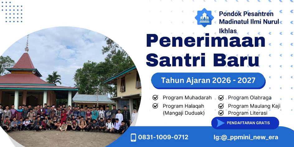 AKTIVI.ID -Pondok Pesantren Madinatul Ilmi Nurul Ikhlas yang berlokasi di Korong Lubuak Aro, Nagari Tandikek, Kabupaten Padang Pariaman, resmi membuka penerimaan santri baru untuk Tahun Ajaran 2026/2027.