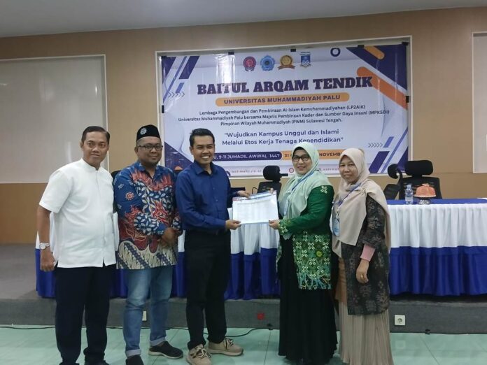 Kegiatan tersebut terselenggara atas kerjasama Unismuh Palu melalui Lembaga Pengembangan Pendidikan Agama Islam dan Kemuhammadiyahan (LP2AIK) dengan Majelis Pembinaan Kader dan Sumber Daya Insani (MPKSDI) Pimpinan Wilayah Muhammadiyah Sulawesi Tengah, dibuka oleh Wakil Rektor I Unismuh Palu, Dr. Sudirman, M,Kes mewakil Rektor Unismuh Palu.
