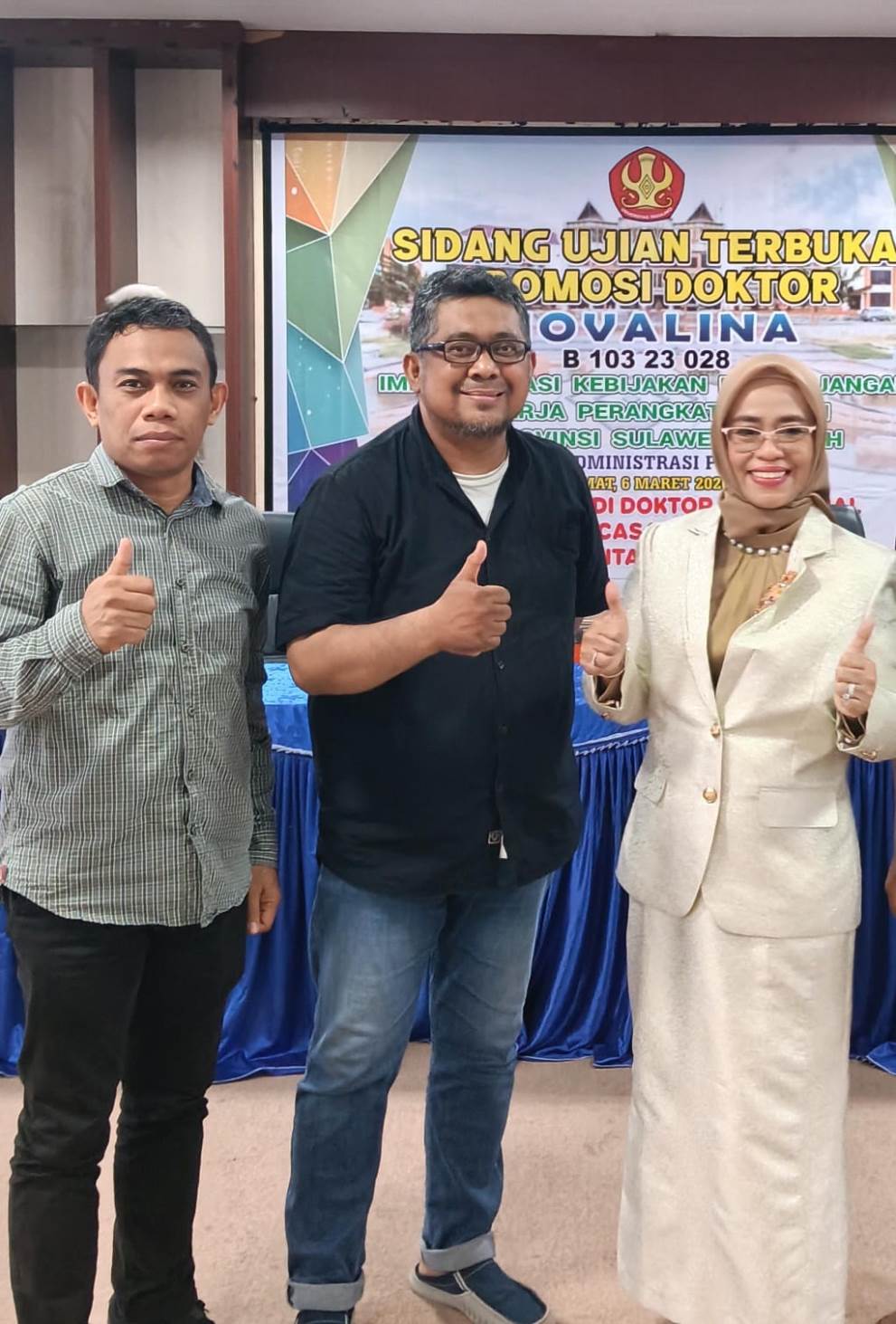 Dalam sidang promosi itu, Novalina dinyatakan lulus setelah berhasil mempertahankan disertasinya berjudul “Implementasi Kebijakan Penjenjangan Kinerja Perangkat Daerah di Provinsi Sulawesi Tengah” di hadapan tim penguji.