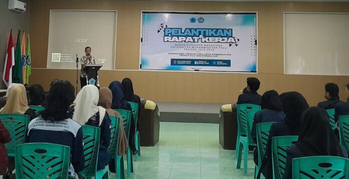 AKTIVI.ID-Universitas Muhammadiyah (Unismuh) Palu telah melaksanakan prosesi pelantikan Pengurus Badan Eksekutif Mahasiswa (BEM) Universitas Periode 2025-2026 di Aula Rektorat, Senin (10/3/2025).